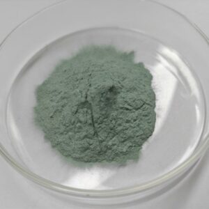 El carburo de silicio (SiC) verde es un material abrasivo sintético ultraduro producido en un horno de resistencia eléctrica a altas temperaturas utilizando una mezcla de arena de cuarzo, coque de petróleo y sal común, con sílice y carbono añadidos para controlar la pureza. Su distintivo color verde se debe a su alta pureza, que suele contener más del 99 % de cristales de carburo de silicio, con mínimas impurezas metálicas en comparación con su contraparte negra. Esto le confiere una dureza, fragilidad y agudeza superiores, lo que lo convierte en uno de los materiales más duros disponibles, solo superado por el diamante y el carburo de boro.